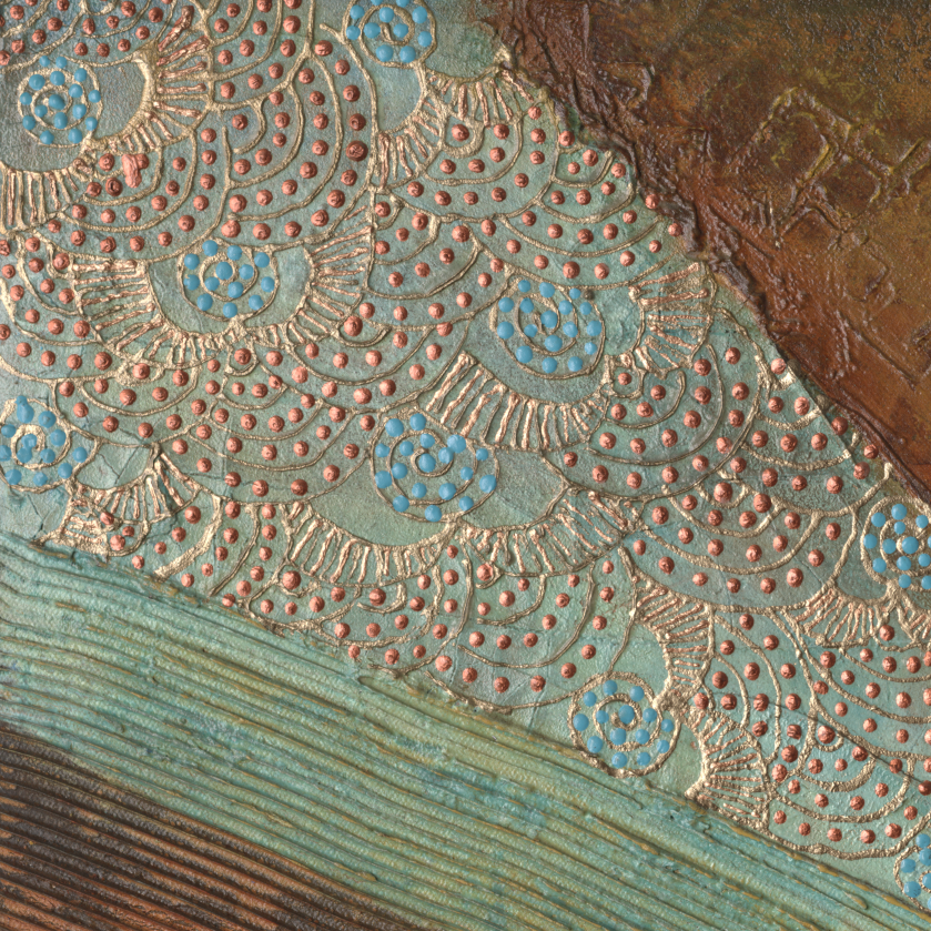 Close up of artwork by Pat Stacy showing both texture and metallic